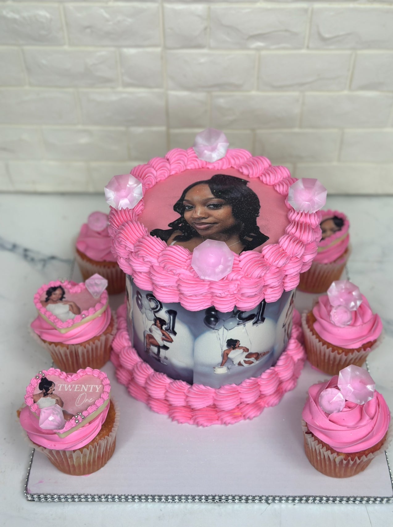 Make a statement at your next celebration with our signature Celebration Glam Set — a luxe, photo-forward cake and cupcake combo designed to steal the show.